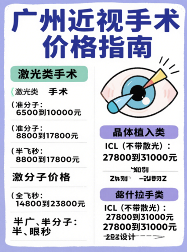 近视手术不是“一刀切”,不同术式的价格、适用人群天差地别。整理了广州主流医院的真实报价,帮你快速对号入座(价格为单眼/双眼区间,具体以医院术前检查后报价为准):